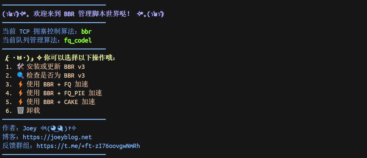 该脚本由 NockSeek的 Joey 编写,非常可爱又实用,用于管理 Linux 的 BBR 拥塞控制算法。